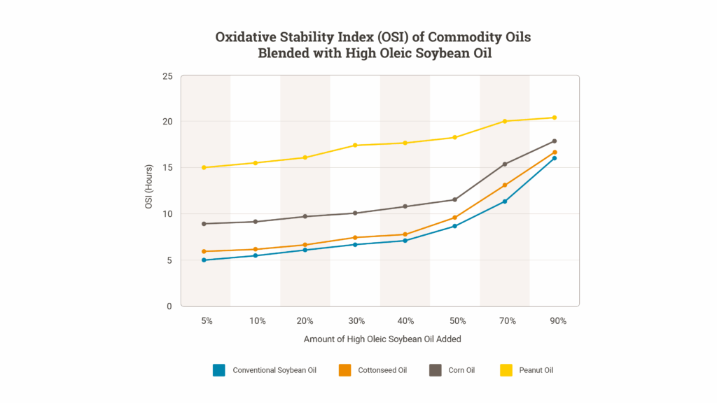 The study showed that blending high oleic soybean oil with conventional frying oil extends the Oxidative Stability Index of the oil, increasing shelf and fry life.